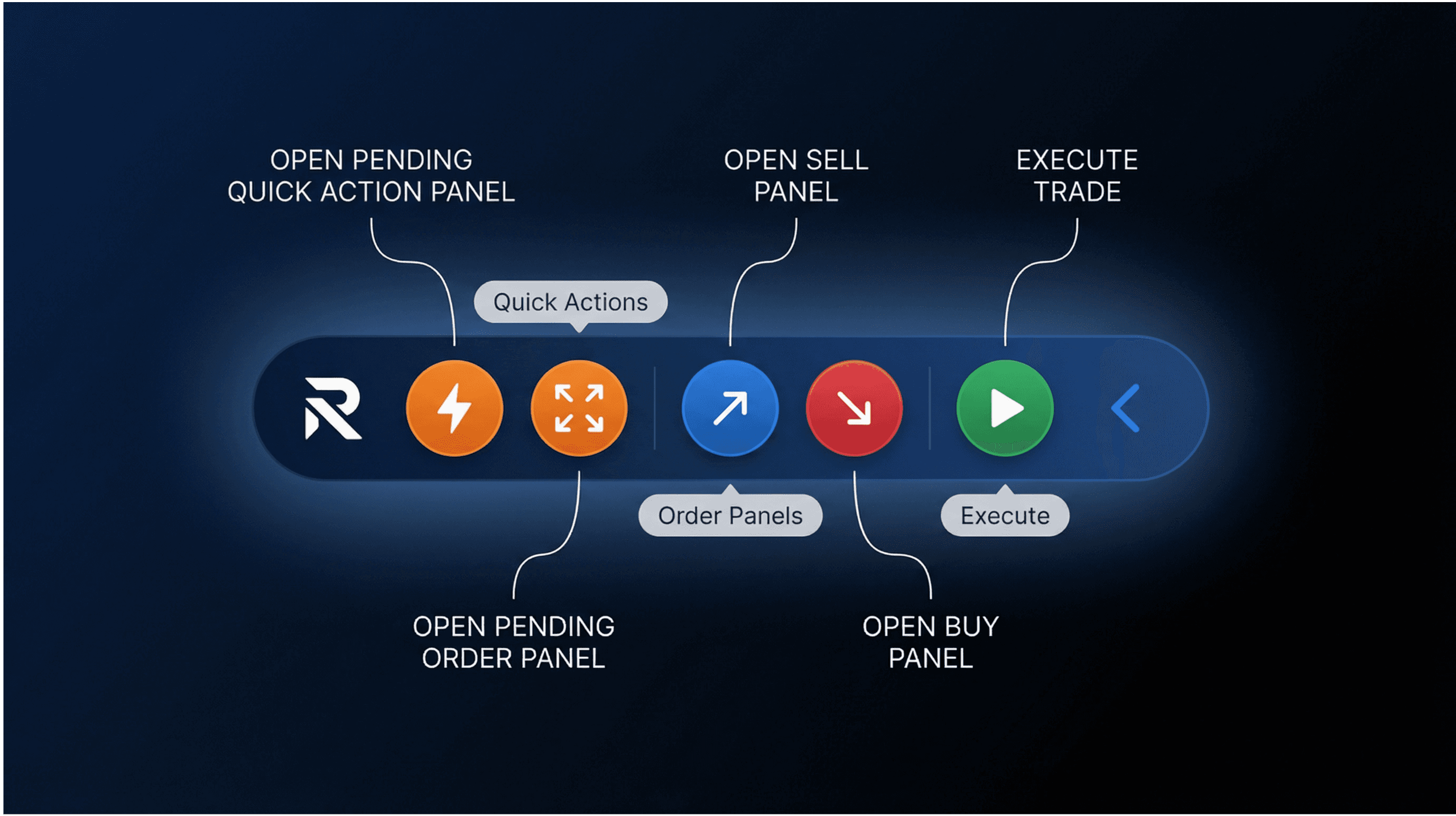 pre‑configured buttons for one‑click buy/sell, break‑even, trailing stop, partial close and other common actions, giving you muscle‑memory speed and consistency.